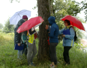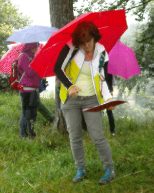 Nicht so einfach..... sich vor Regen schützen und gleichzeitig Notizen machen